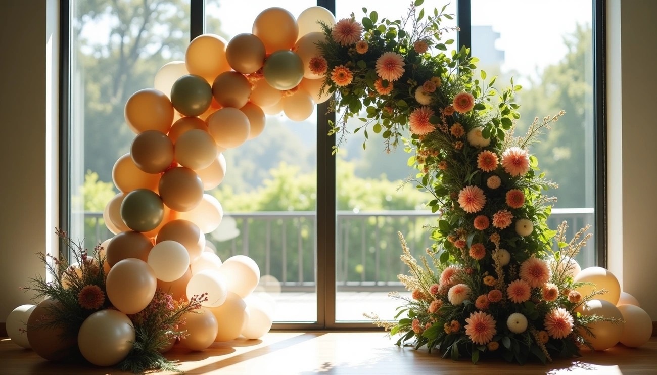 A combinação de balões personalizados com flores naturais, tecidos e luzes LED se consolida como tendência principal em 2025. Esta mistura cria ambientes mais ricos e personalizados, ideais para casamentos, aniversários e eventos corporativos.