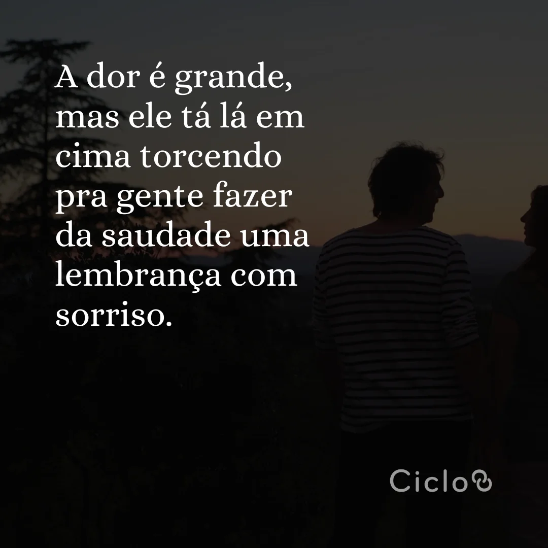 A dor é grande, mas ele tá lá em cima torcendo pra gente fazer da saudade uma lembrança com sorriso. Copiar Copiado!