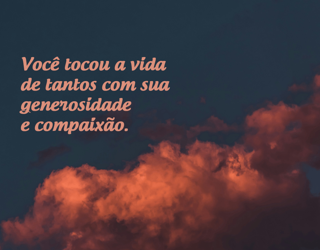 Você tocou a vida de tantos com sua generosidade e compaixão